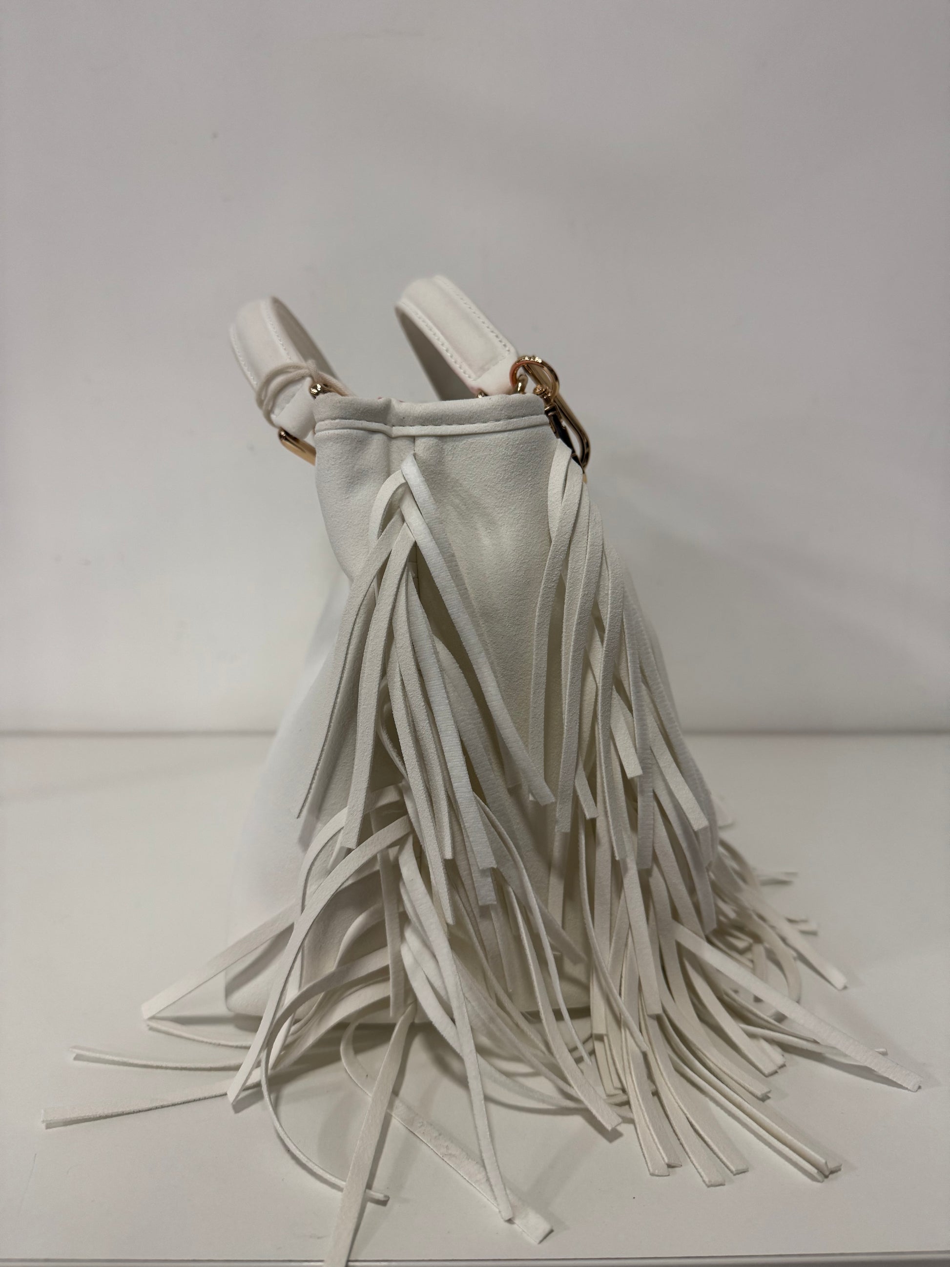 La Borsa FATIMA CHAMOIS de La Fille Des Fleurs è un' elegante borsa in camoscio con frange che completerà perfettamente ogni outfit. Realizzata con materiali di alta qualità, offre un look sofisticato e femminile. Perfetta per un'occasione speciale o per un tocco di classe quotidiano.